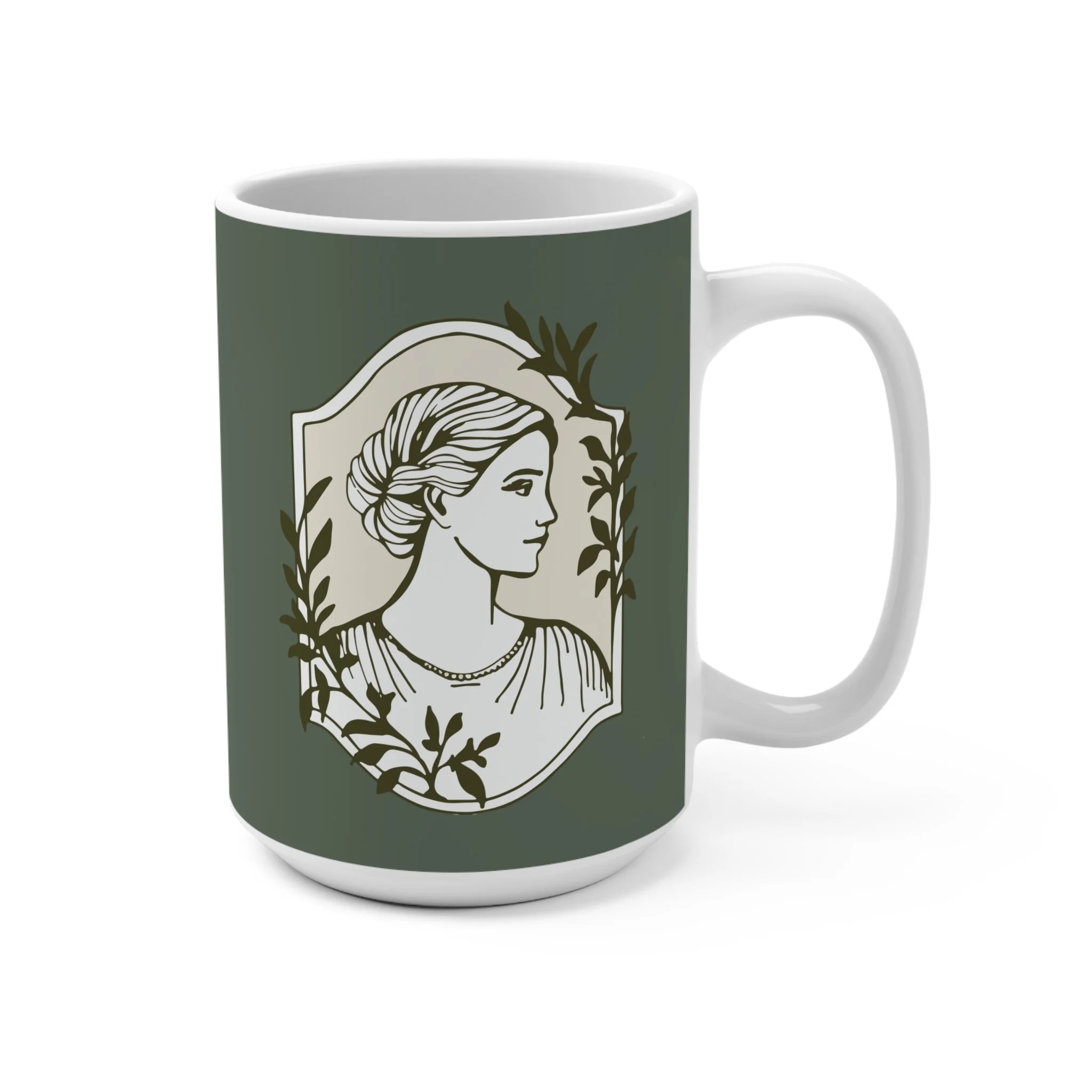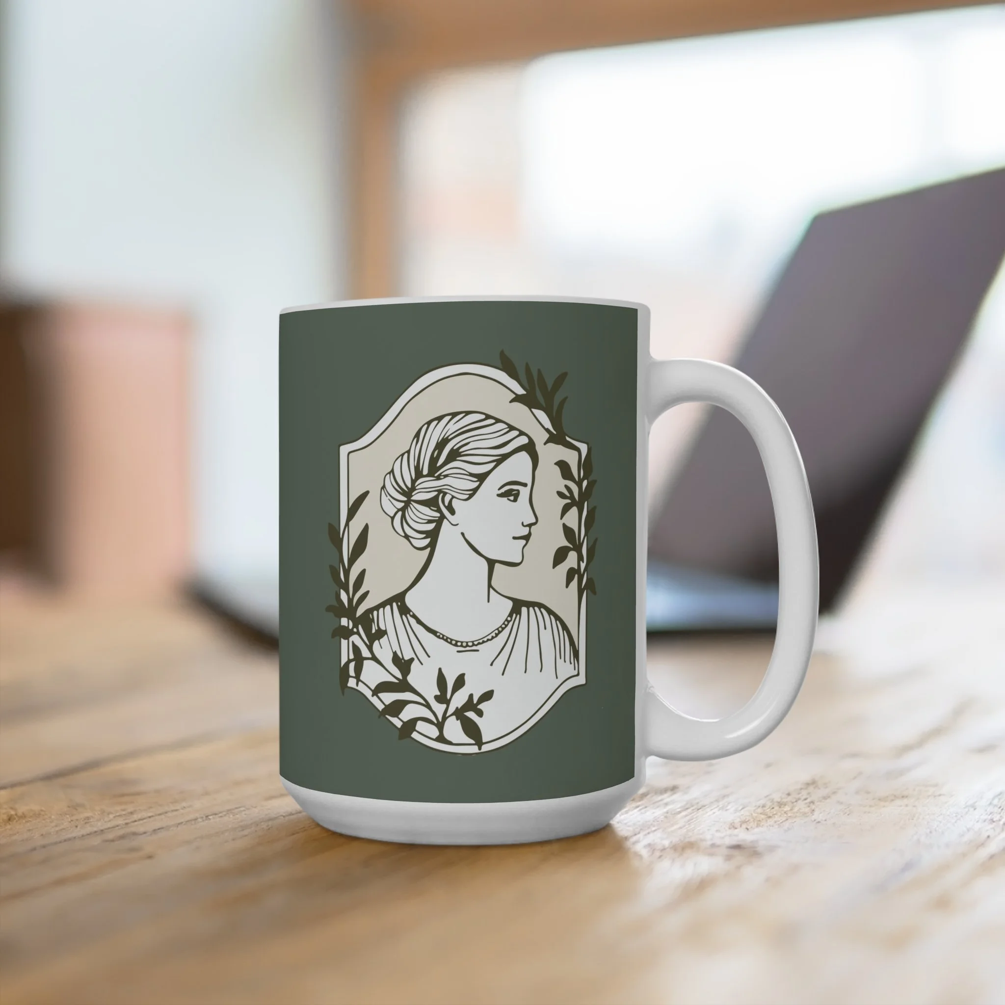 Green Botanical Classical Portrait Mug – 15oz Ceramic Coffee Cup